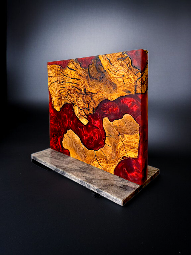Dieser Magnetische Messerhalter aus Olivenholz und rotem Epoxidharz ist das Must-have für jede Küche. Verabschiede dich von unordentlichen Schubladen und langweiligen Messerblöcken. Dieses aussergewöhnliche Stück vereint die natürliche Schönheit von Olivenholz mit einem lebhaften rot, das deine Küche sofort aufwertet.