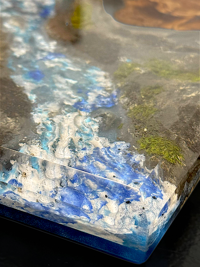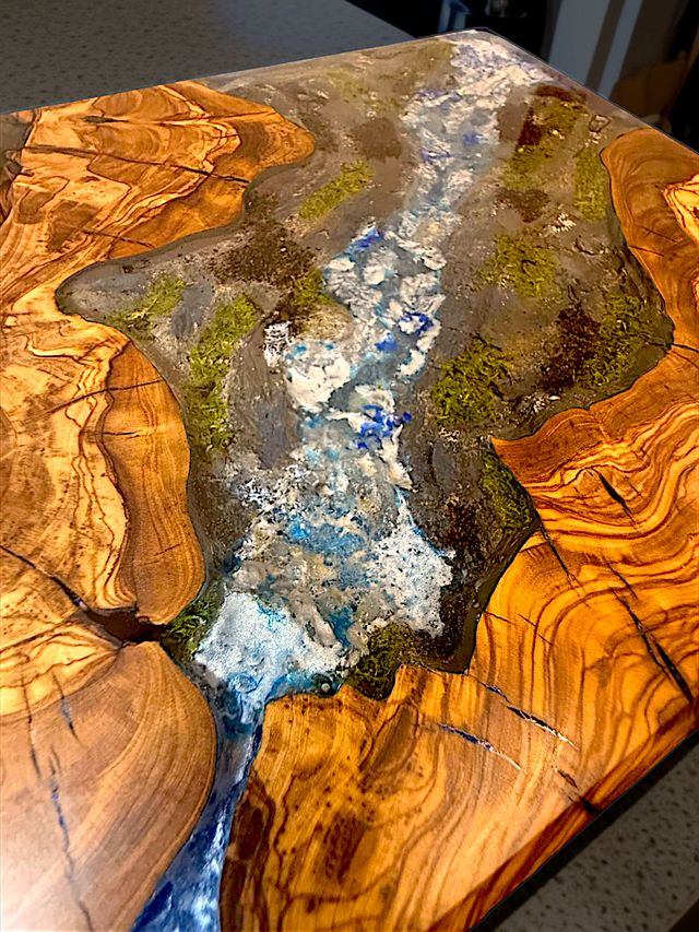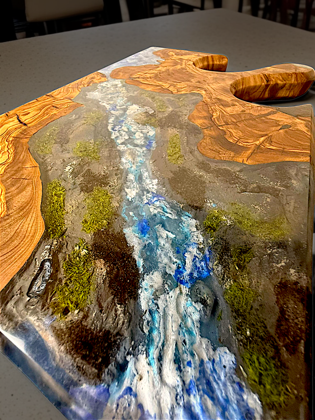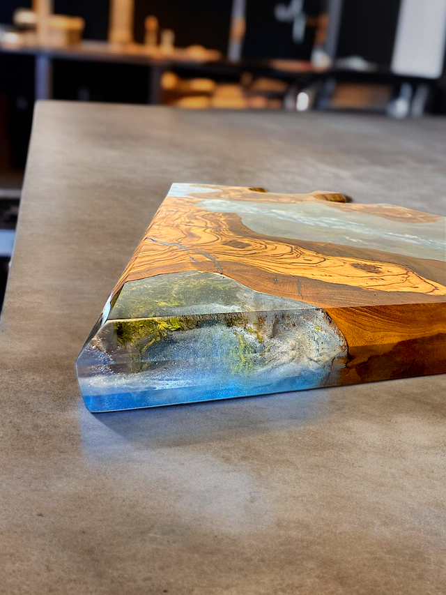 Jeder Blick auf dieses einzigartige Brett vermittelt Ihnen ein authentisches Naturfeeling, das Ihre kulinarischen Momente bereichert. Gefertigt aus edlem Olivenholz und hochwertigem Epoxidharz, ist jedes Brett ein Unikat. Die detailreiche Diorama-Landschaft wurde liebevoll von Hand gestaltet, um die Szenerie so realitätsnah wie möglich einzufangen.