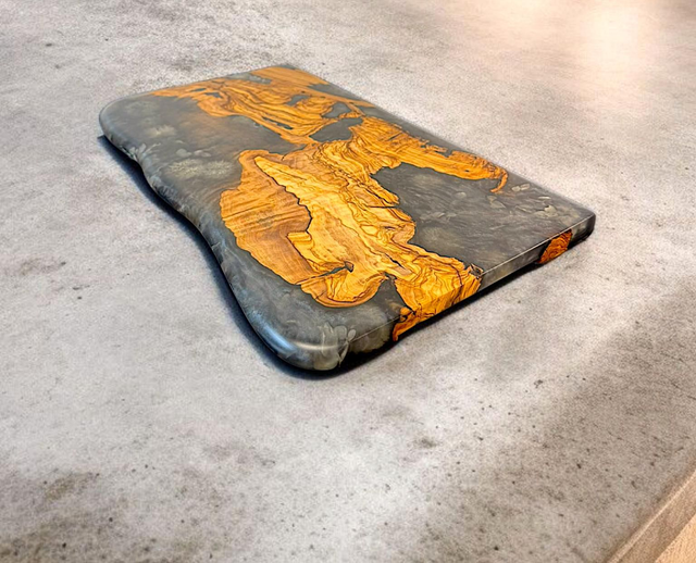 Gefertigt aus massivem spanischem Olivenholz, besticht es durch seine einzigartige Maserung und Wärme.