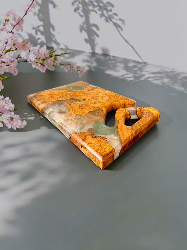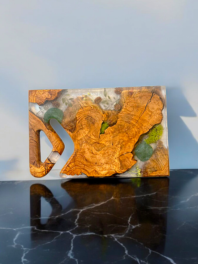 Naturschönheit trifft modernes Design: Servierbrett aus Olivenholz und Epoxidharz